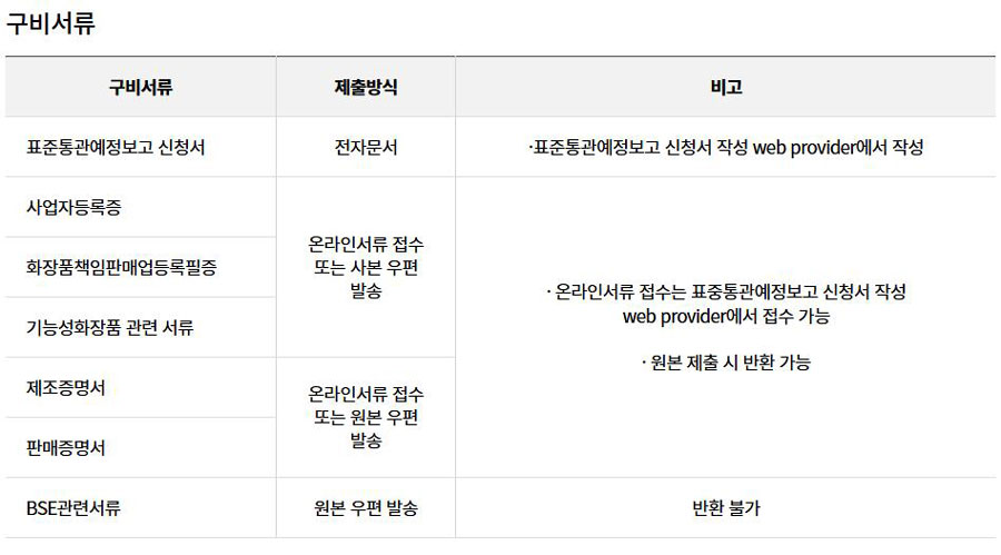 화장품법 시행규칙 제12조의 제조 및 판매증명서를 갖추어 표준통관예정보고를 필 하여 화장품을 수입하는 것.